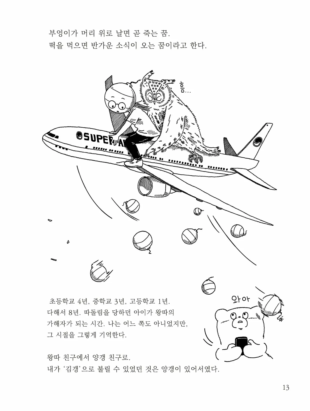 김갱과 양갱이 지나간 시절을 떠올리며 나누는 대화를 따라 펼쳐지는 1장, 김갱의 초등학교 시절 일화를 담은 2장, 그리고 김갱이 들려주는 인형극인 3장, 총 3막으로 구성된 느슨한 옴니버스식 만화입니다.